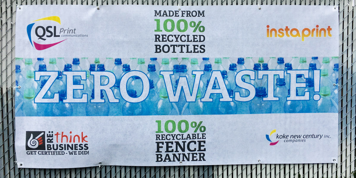 Finally, we are constantly on the lookout for new products that can replace standard outdoor graphics. In this pursuit, we have found two different banner materials that are manufactured from recycled plastic bottles. These banner materials can be recycled through QSL. We already have a pick-up service for this type of plastic.